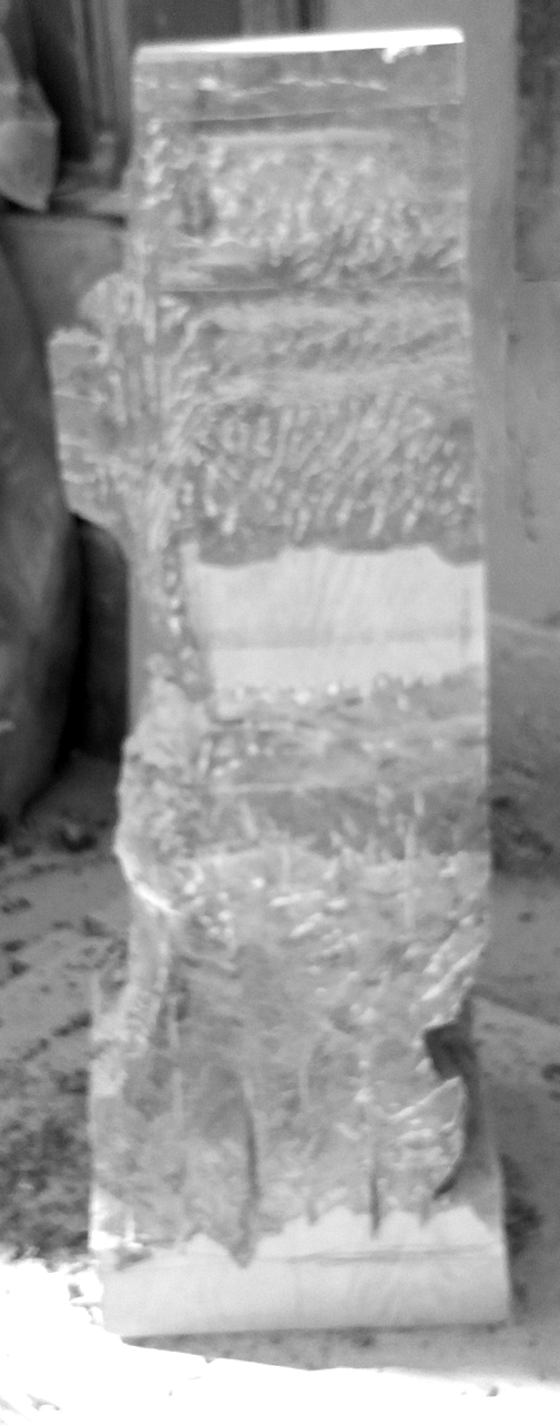 gleich bearbeitet, wie die gesamte Figur, mit Spitzeisen, Zahneisen und Setzer.