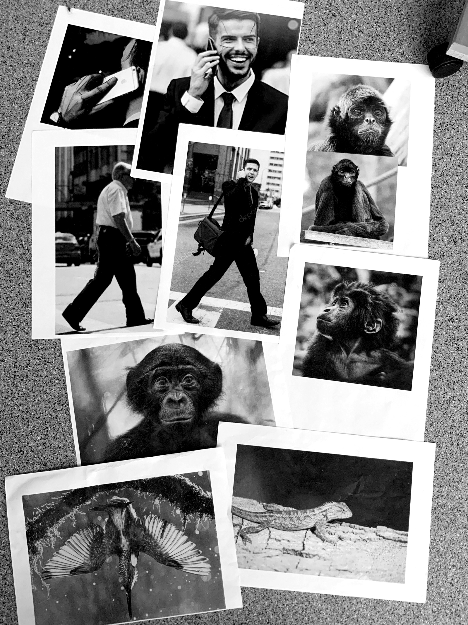 sein Handy ans Ohr hält usw. Das Bild des untersten Affen und das des Eisfogels dienten als direkte