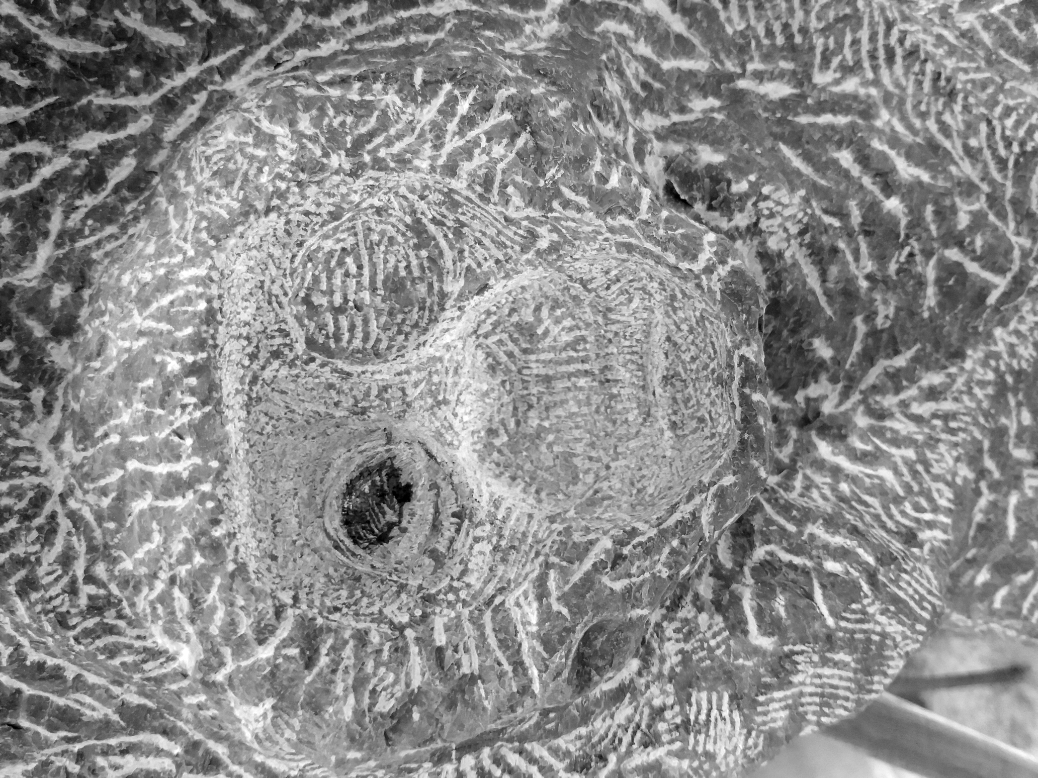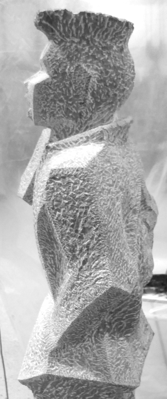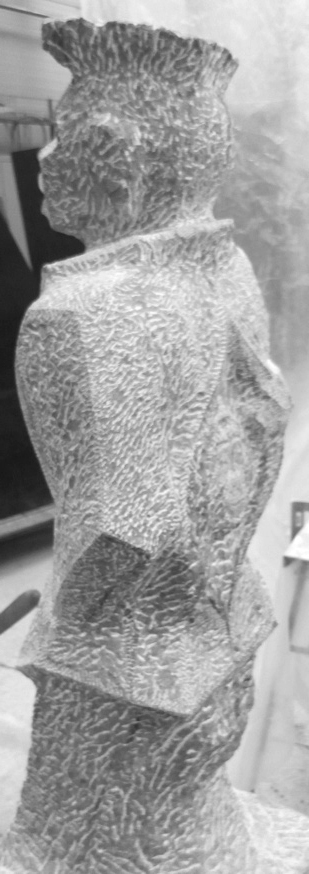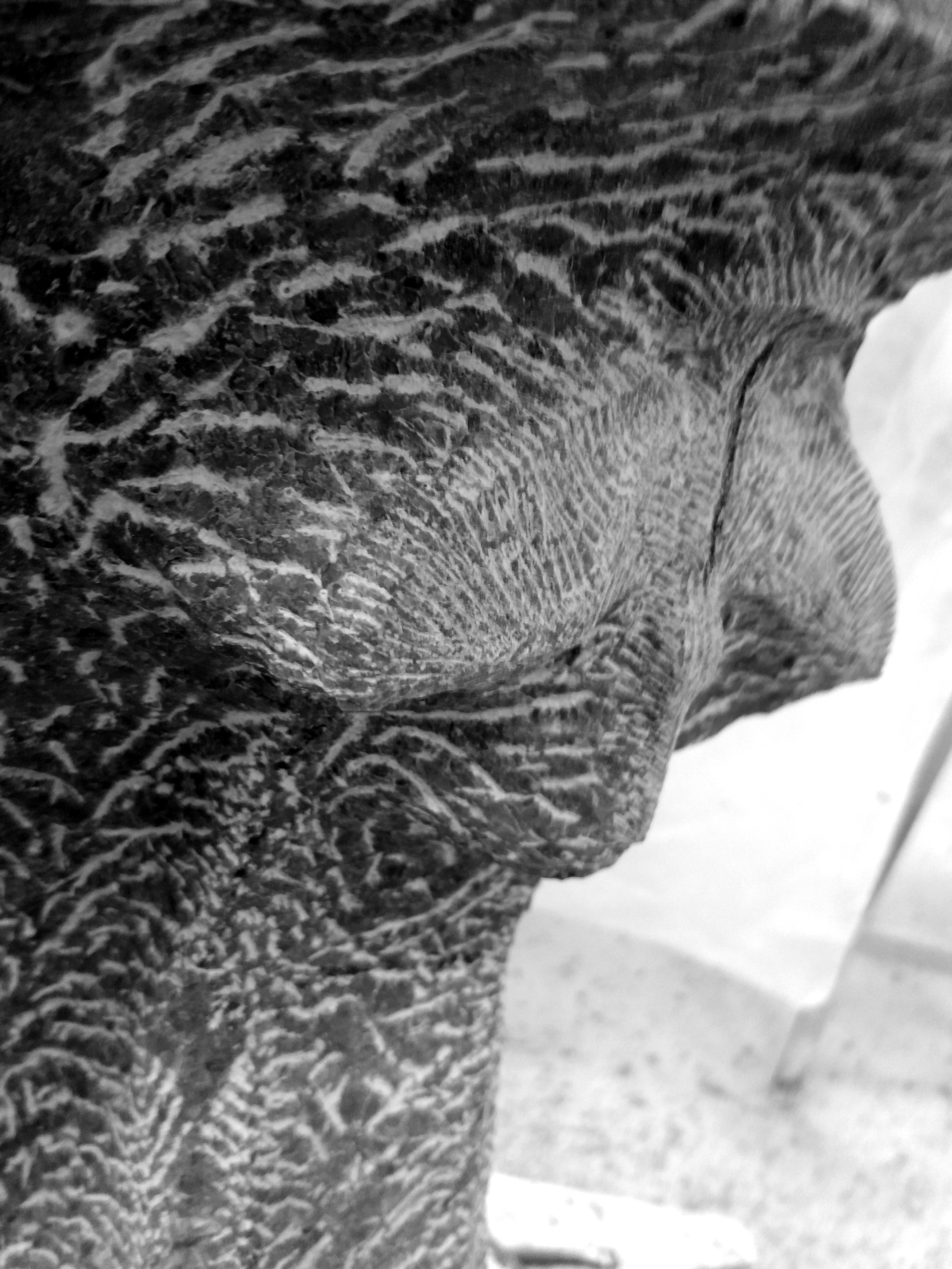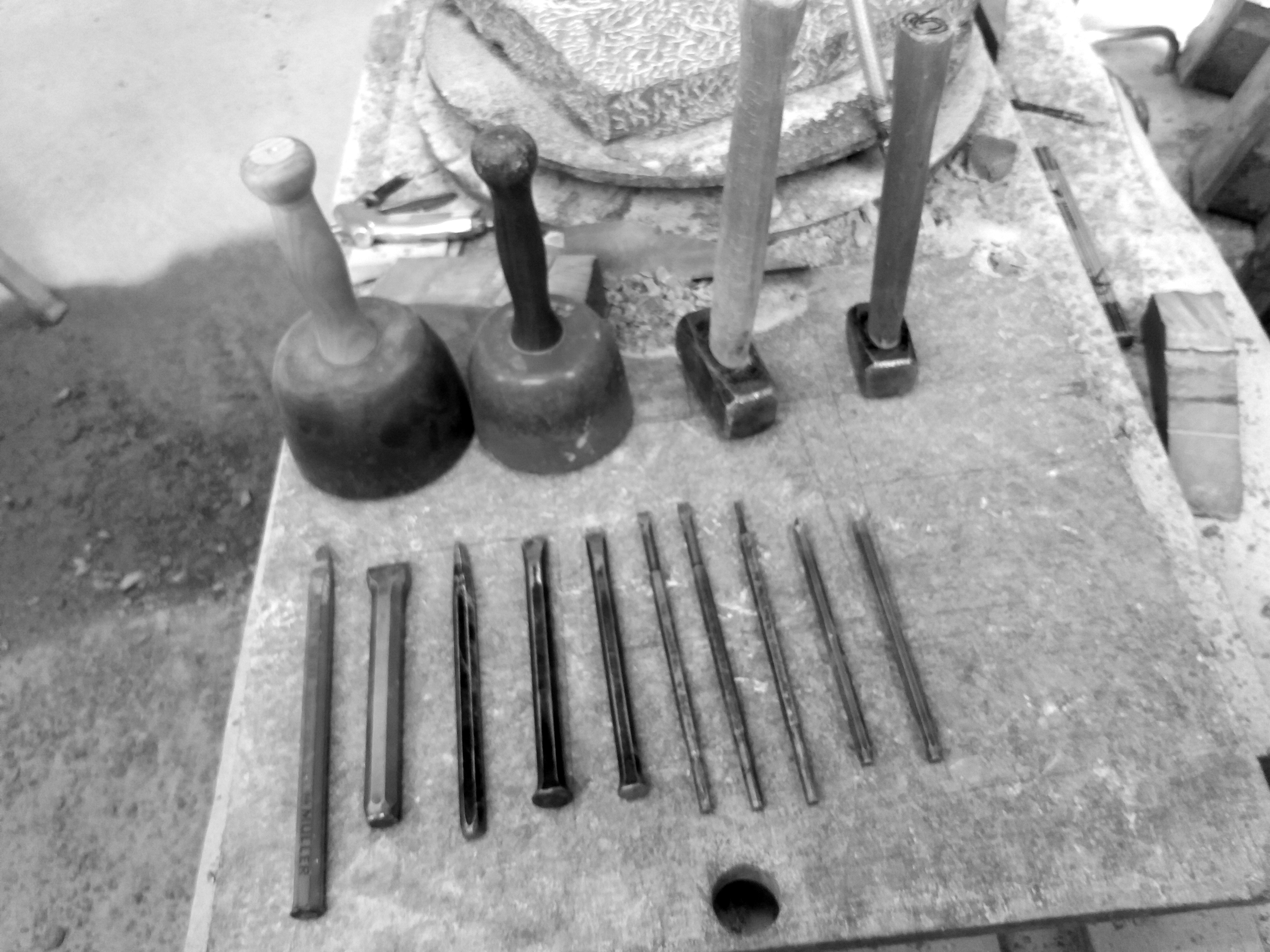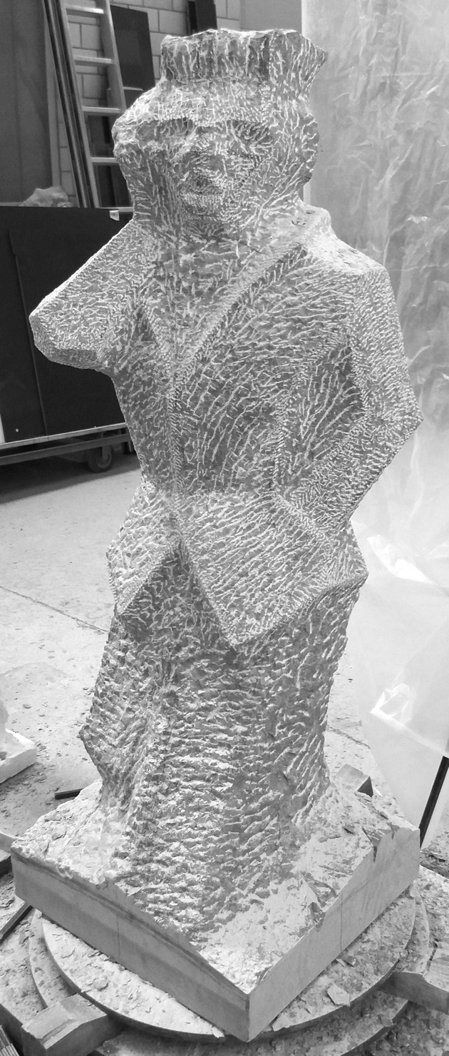 gleich bearbeitet, wie die gesamte Figur, mit Spitzeisen, Zahneisen und Setzer.