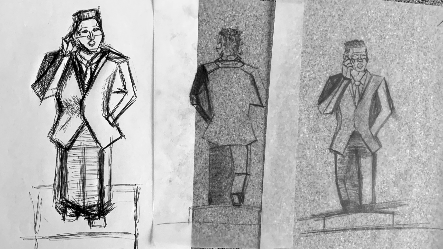Mit dieser Idee fing das skizzieren an. Ich stellte mit einen Geschäftsmenschen vor, der auf der Strasse
